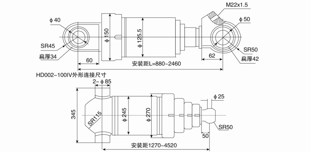 250/220、160/150、100/90:三級缸,缸徑分別為250、160、100,桿徑分別為220、150、90