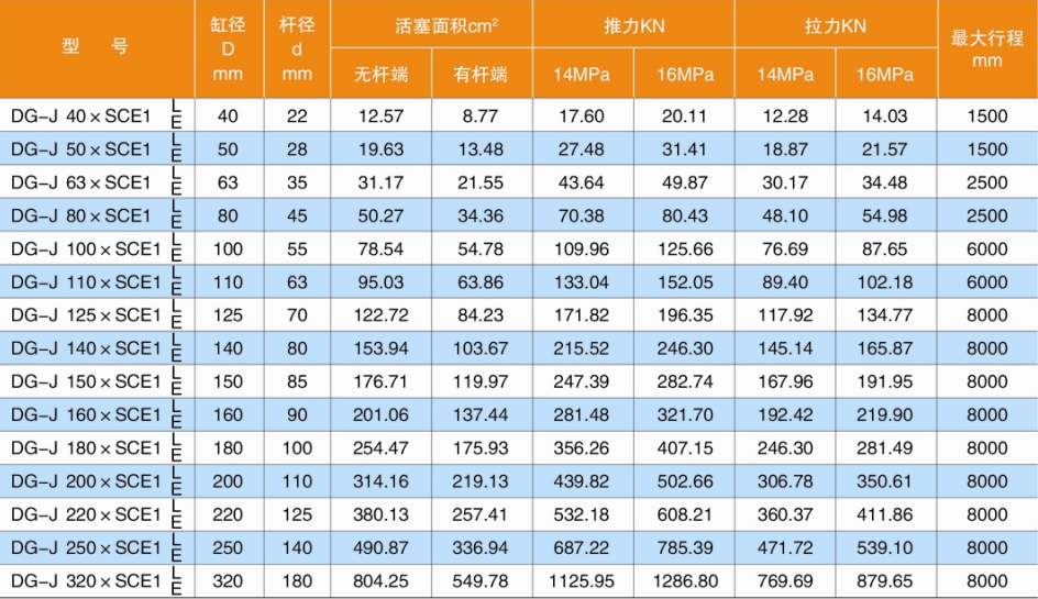L:活塞桿連接方式代號 L=螺紋連接;E=耳環(huán)連接